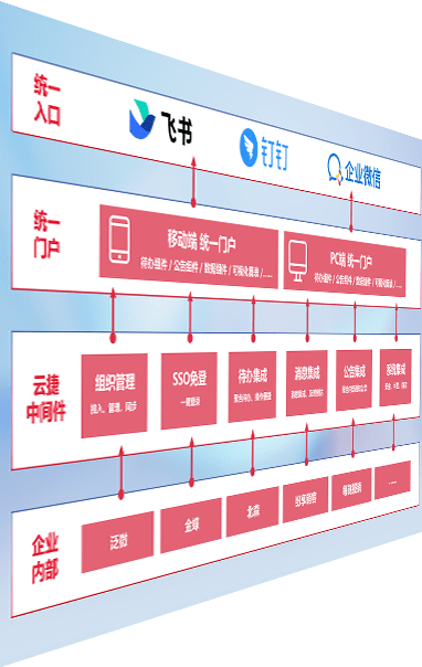 对协作平台提供支持服务,,,支持企业应用与协作平台对接,,包含组织同步、、消息集成、、、、待办集成等。。。支持目前主流的协作平台:钉钉、、企微和飞书。。。。